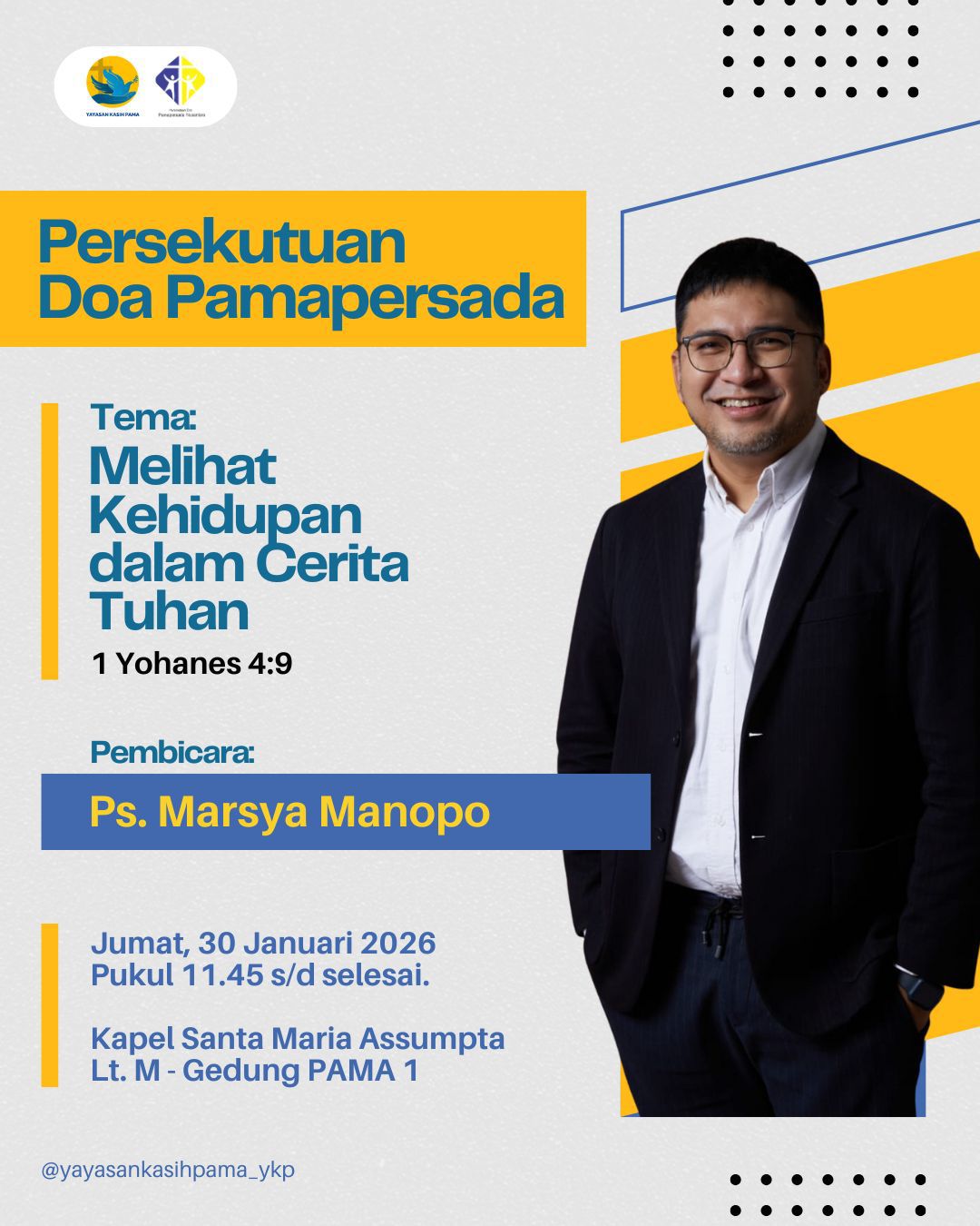 Turut mengundang Rekan rekan Kristiani dan Katolik Persekutuan Doa PAMA Groupuntuk menghadiri Ibadah dan perayaan Natal Pama Group 2025Dengan tema " Allah Hadir untuk menyelamatkan Keluarga "Natal Pama Group 2025 yang akan dilaksanakan pada :Hari, tanggal :Jumat, 09 Januari 2026Waktu :17.00 WIB...