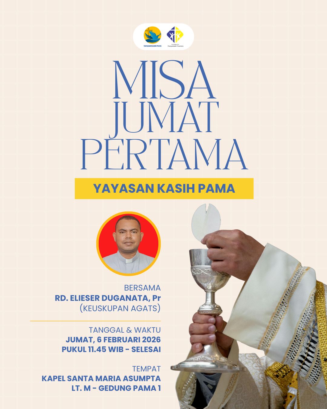 Kami turut mengundang rekan-rekan semua untuk hadir dalam Misa Jumat Pertama PAMA Group.Jumat, 6 February 2026yang akan dipimpin Oleh RD. Elieser...