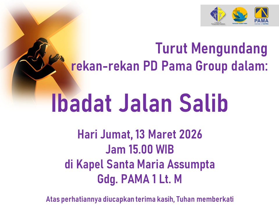 turut serta mengundang rekan-rekan PD Pama Group dalamIbadat Jalan Salib, Jumat 27 Maret 2026, Jam 12.00 WIB di Kaple Sta....